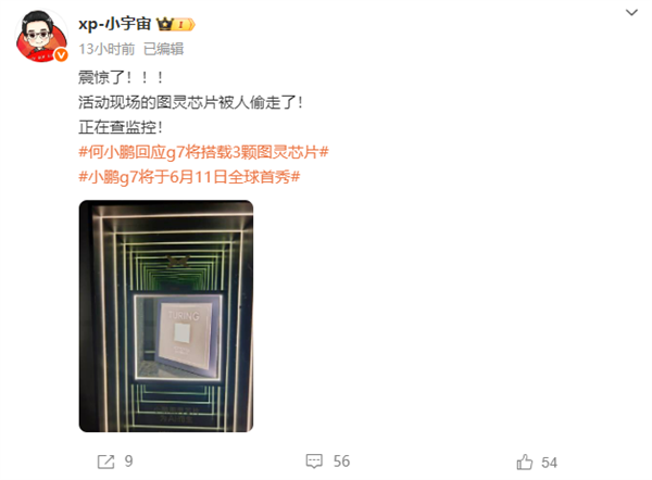 小鹏自研图灵芯片展出时被偷 负责人:正在查监控
